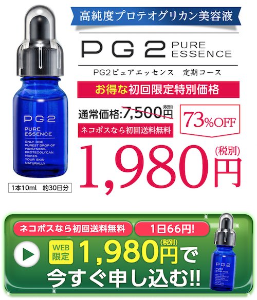 現在、「PG2ピュアエッセンス」は通常価格より5,520円も安い1,980円で試せるキャンペーン開催中!