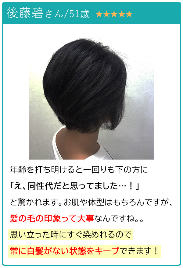 少しでも「白髪嫌だな」って思ったらそれが一生続くんです。それならいっそ若髪を作ると同時に白髪染めしませんか?