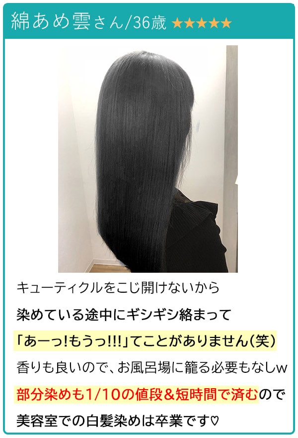 脱色剤も使用してないから髪にも優しい♪(髪を傷めないで染めれるって嬉しいですよね)