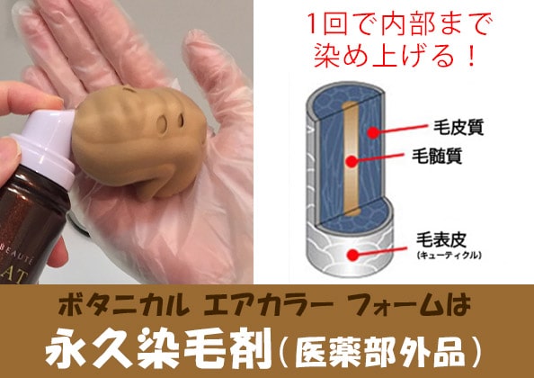 医薬部外品であるボタニカル エアカラー フォームは、1度でしっかり染色してくれるので、何度も重ね染めする必要もないから、白髪染めの手間がグンと軽くなります!