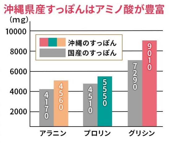他の産地のものと比べても沖縄県産のすっぽんがアミノ酸を1番豊富に含んでいるので