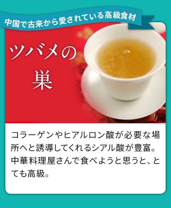 他にも免疫力を高めたり、美肌効果のあるシアル酸を豊富に含んだツバメの巣を配合◎