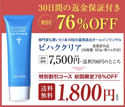 現在、「ビハククリア」は76%OFFの5700円割引で試せる特別キャンペーン中!!