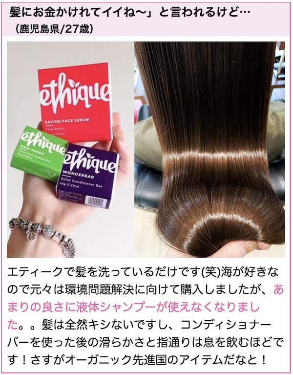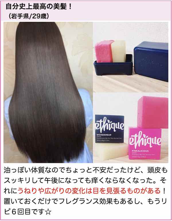 「洗うたびに髪にツヤが出てサラサラになる♪」