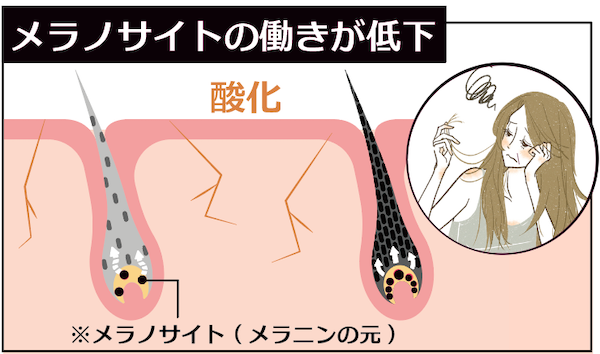 色素が足りず白くなった髪が増えてしまうのです…!