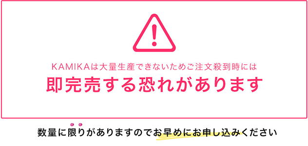 KAMIKAですが、かなり人気が爆発していて、注文が殺到中みたいなんです…