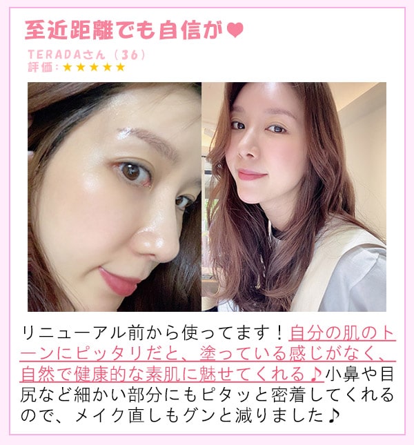 また、薄付きでも凸凹を滑らかに整え、肌質が変わったと錯覚するレベルのツヤ感と素肌感を演出してくれます!